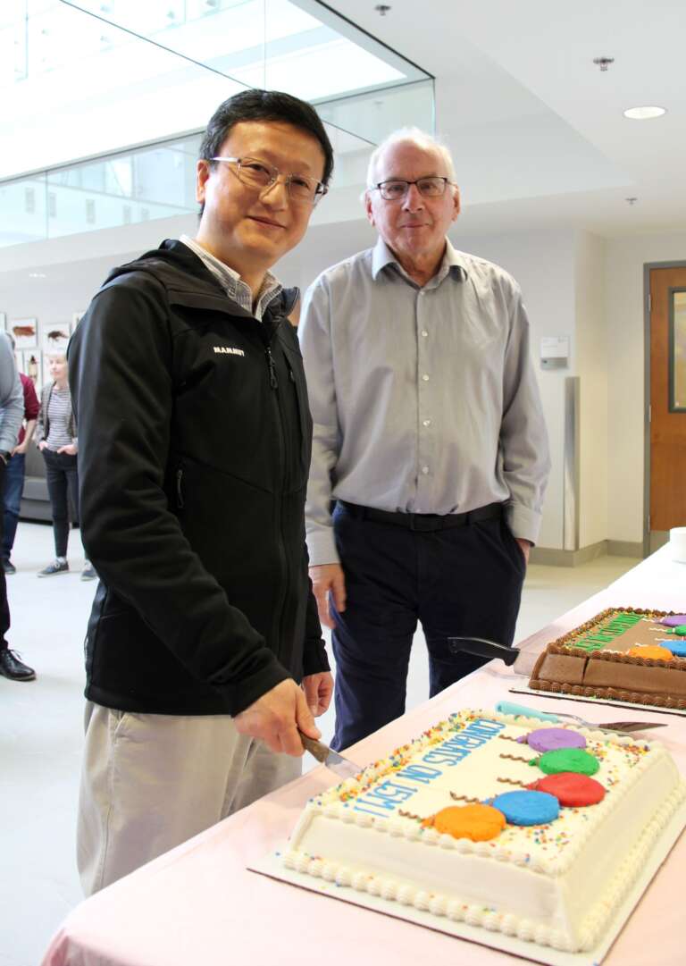 Drs. Xin Zhou and Paul Hebert celebrate the 15M specimen